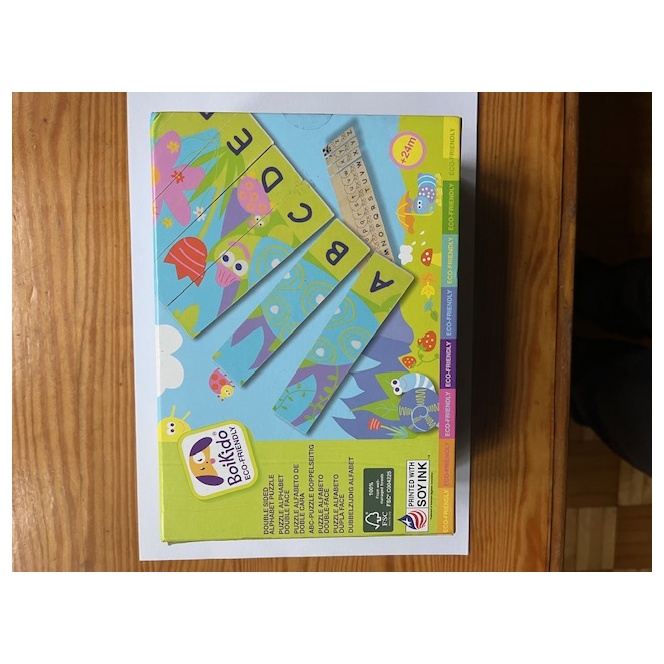 Układając te unikalne puzzle dziecko uczy się alfabetu gdyż każda z tabliczek jest oznaczona drukowaną literką alfabetu.