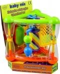 Na każdym boku trójkata są zamocowane obracajace się elementy i ruchome, bezpieczne lusterko. Na górze umieszczone są elementy do przesuwania a na rogach przeźroczyste "menzurki" z kolorowymi koralikami. Trójkąt można dowolnie przestawiać, obracać wprawiając w ruch różne, kolorowe elementy.