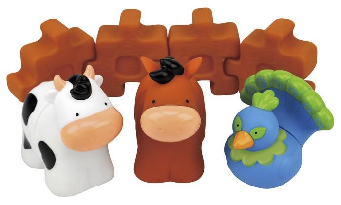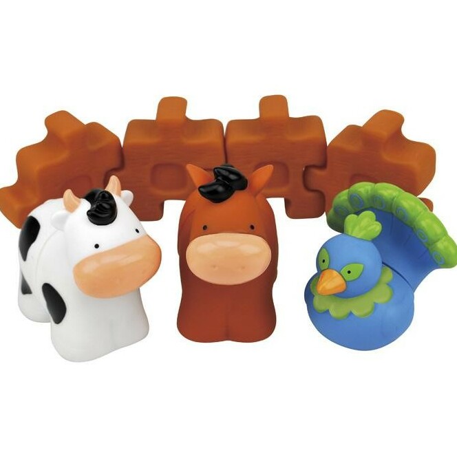 Farma 2 składa się z konika, krówki i ptaszka oraz 4 elementow z których można zbudować ścianę - tło dla farmy, lub np. płotek. Każde zwierzątko rozklada sie na 2 części. Poszczególne części zwierząt można dowolnie łączyć dopasowując je do siebie.