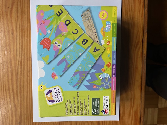 Układając te unikalne puzzle dziecko uczy się alfabetu gdyż każda z tabliczek jest oznaczona drukowaną literką alfabetu.