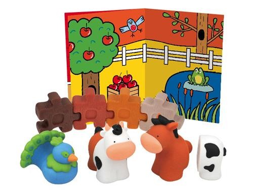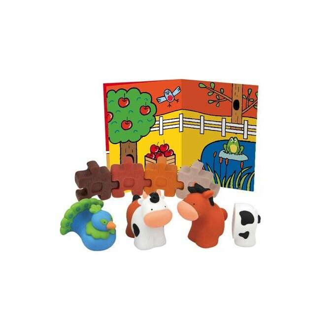 Farma 2 składa się z konika, krówki i ptaszka oraz 4 elementow z których można zbudować ścianę - tło dla farmy, lub np. płotek. Każde zwierzątko rozklada sie na 2 części. Poszczególne części zwierząt można dowolnie łączyć dopasowując je do siebie.