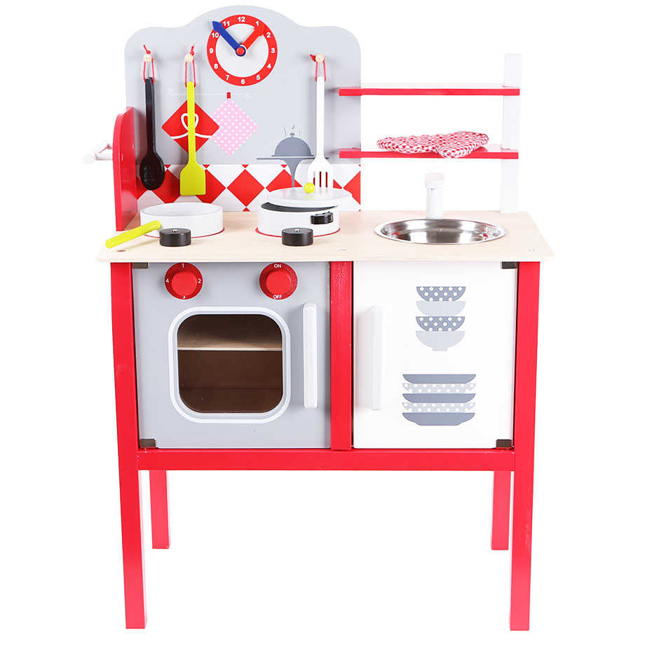 Obrotowy zegar pozwoli odmierzać czas, a kuchenna rękawica ochroni przed "rozgrzanymi" garnuszkami. Wszystko jak w prawdziwiej kuchni.